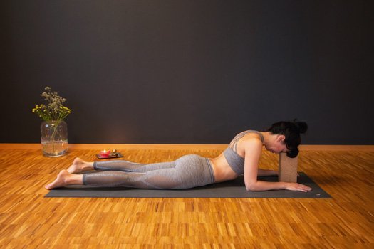 Ακουμπήστε το μέτωπό σας πάνω σε μια κουβέρτα διπλωμένη ή ένα μαξιλάρι, για να στηριχτείτε και να χαλαρώσετε πιο εύκολα.